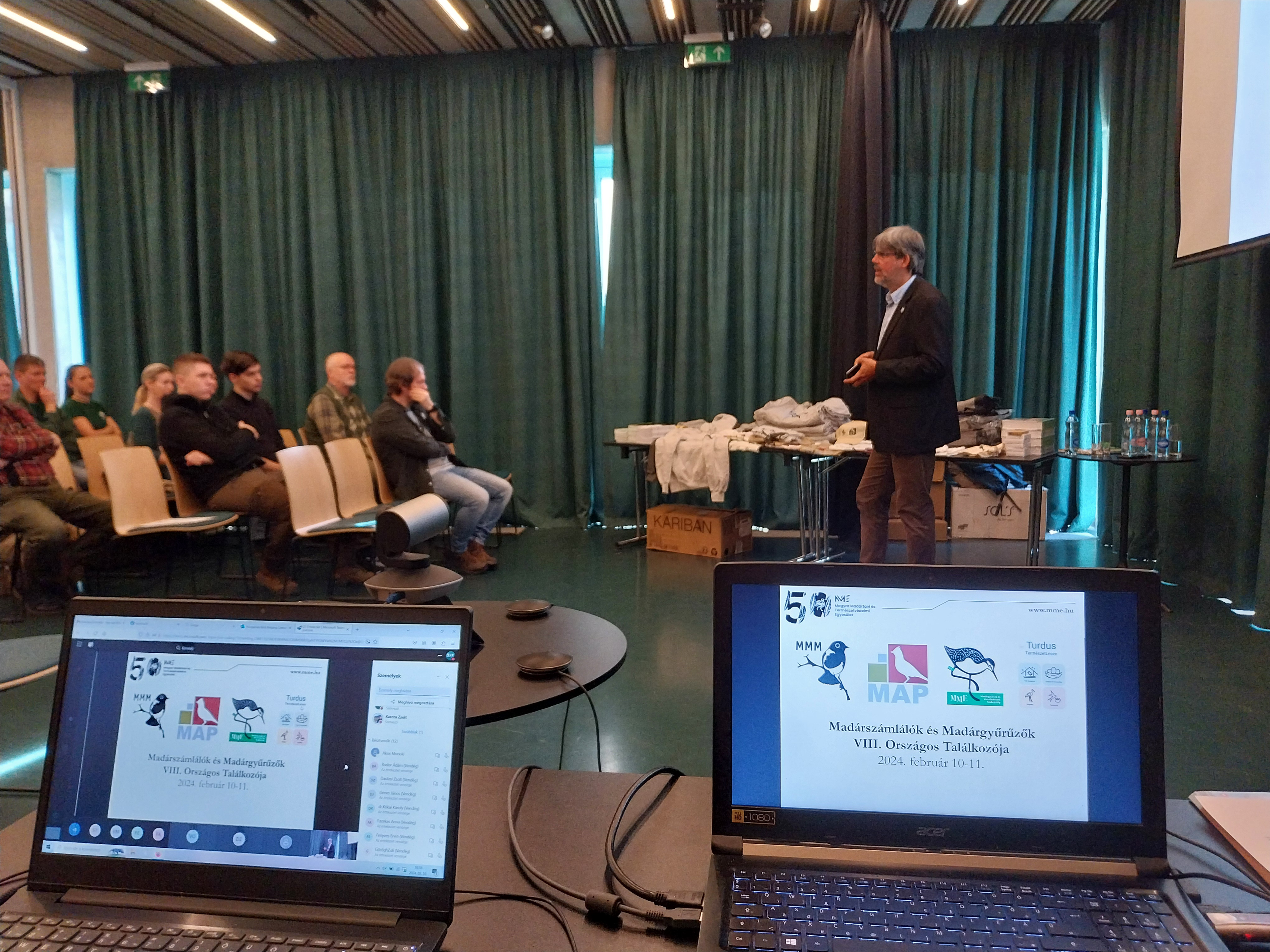 2024. február 10-11-én lezajlott a Madárszámlálók és Madárgyűrűzők VIII. Országos Találkozója. A két napos rendezvény első napján az MME Monitoring Központ regisztrált madármegfigyelői (ez hagyományosan az MMM Találkozó), a második napon az MME Madárgyűrűzési Központ regisztrált madárgyűrűzői vesznek részt (ez hagyományosan a Gyűrűzőtalálkozó). A két önkéntes madártani adatgyűjtő csapat átfed, sokan mindkét központ munkájában részt vesznek. Összesen 140-en regisztráltak, az első napon 72-en vettek részt, a második napon 90-en. Az eseményt közvetítettük a Teams rendszerben, a belépők és követők száma 15-25 között volt mindkét napon.
